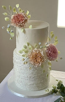 The design and decoration of your cake is bespoke to you, no two cakes are the same. Sugar flowers are a beautiful addition to wedding cakes. They can be made to reflect the colours and flowers in the bouquet, or, if you prefer, we can liaise with your florist and prepare fresh flowers. The decorations for all my cakes are handmade in my cake studio.